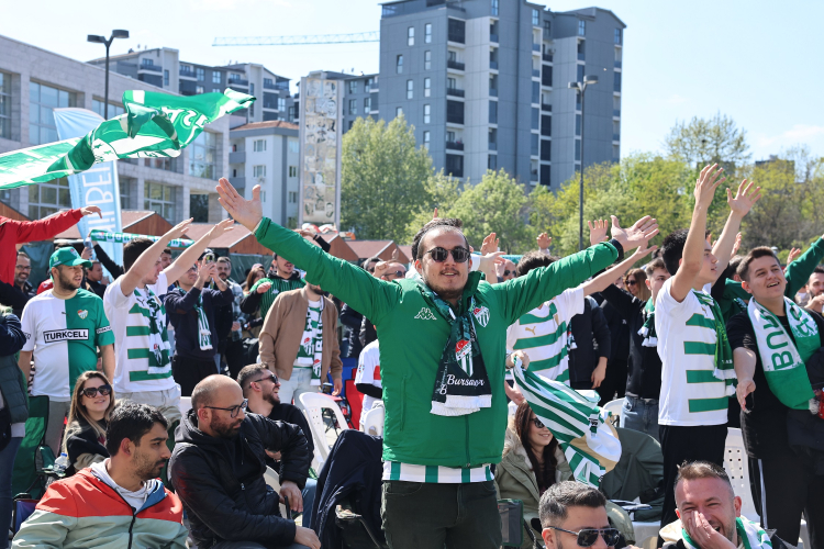 Bursa’da binlerce taraftar, Atatürk Spor Kompleksi Matlı Stadyumu yanındaki otopark alanında bir araya gelerek maçı dev ekrandan izledi. Şehrin çeşitli noktalarında Bursaspor’un şampiyonluk yolundaki kritik Artvin Hopaspor karşılaşması, “Formanı Giy, Sandalyeni Kap Gel” sloganıyla etkinliklerle pekiştirildi.